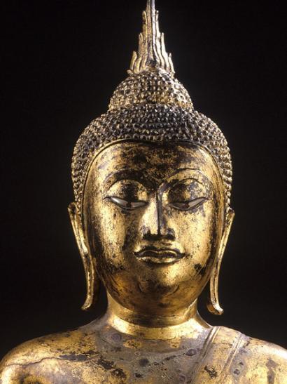 Buddha sitting in a position using the ground as a witness, detail XIXth century - Thailand Photo P. Ageneau |